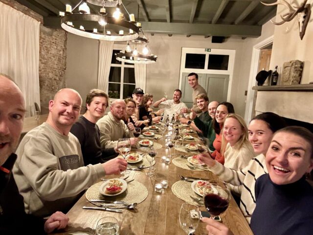 De eerste collega’s arriveerden maandagmiddag. Niet lang na het inchecken stonden de boodschappen voor de deur en werd de sushi bezorgd. De avond eindigde met een fanatieke pot Hitster, waarin de verschillende generaties hun muziekkennis mochten bewijzen. Al met al tijd om lekker te landen.